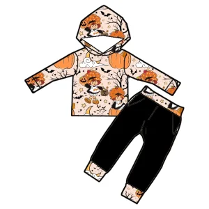 Autumn Children’s Clothing Set Long Sleeved Hooded Two-piece Set Halloween Printed Bamboo Fabric Soft