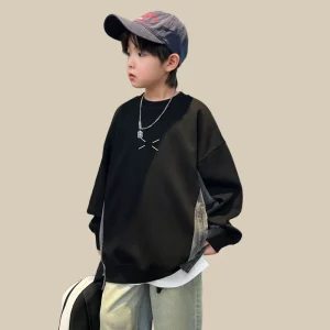 Teens Clothing Autumn New Casual Middle Large Children’s Sweatshirt Boys Cool Handsome Loose Trendy Pullover for Age 7-12