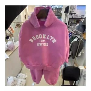 2023 Autumn Girls Loose Casual Suit Autumn Children’s Cute Full Tendon Waist Lazy Style Sweater Two-Piece Set