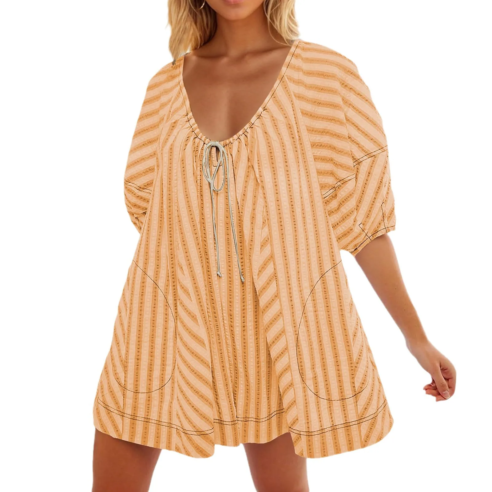 1083 Stripe Loose Jumpsuit Dress Casual Girls Elegant Formal Sexy Women’s Clothing Trendy Pockets Vetements Femme Chic Clothes