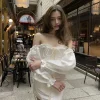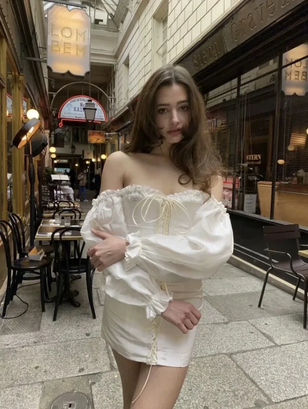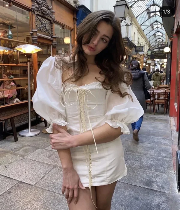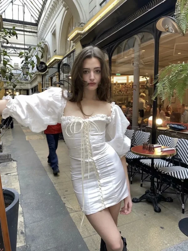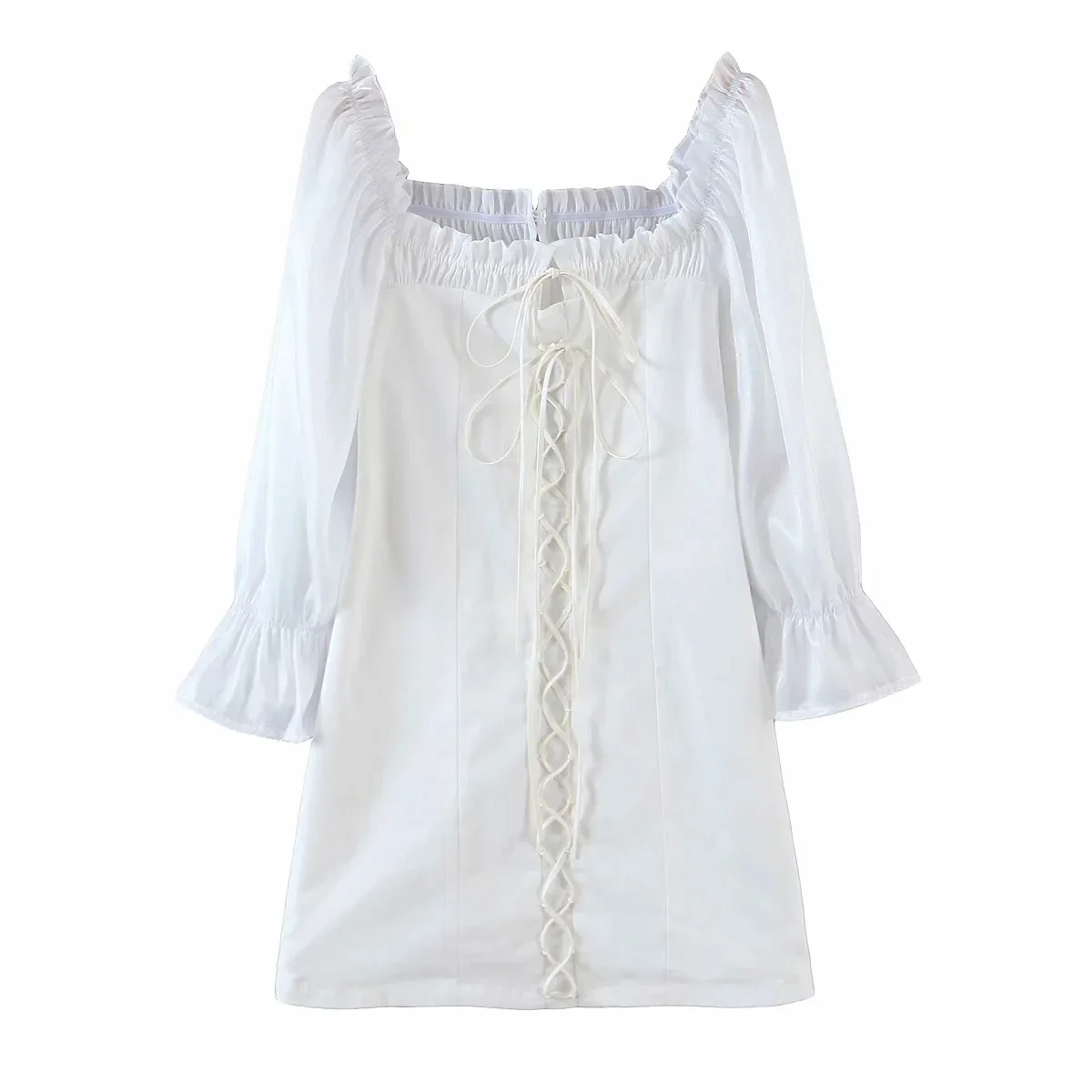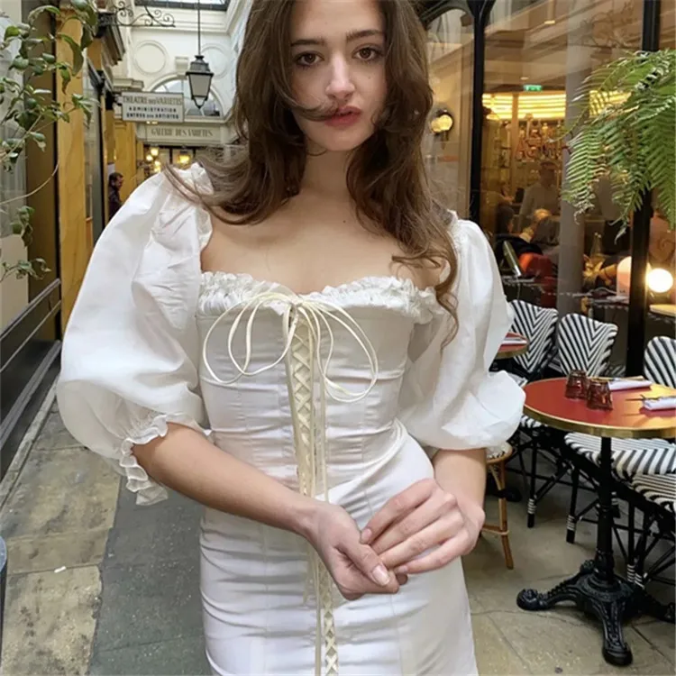 1164 French Cotton Elastane Ruffle Bandage Mini Club Clothing Casual Dress Elegante White Summer in Linen Lady Plus Size Turkey