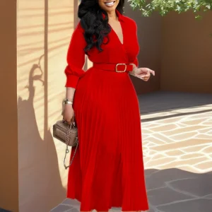 Autumn Hot Retro Elegant Gentle High-waisted Belt Seven-point Sleeve Umbrella Dress Casual commuter Holiday Party Women’s Dress