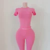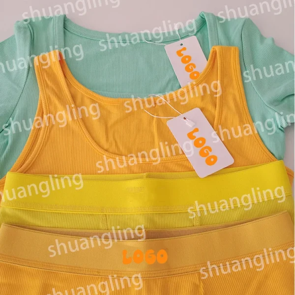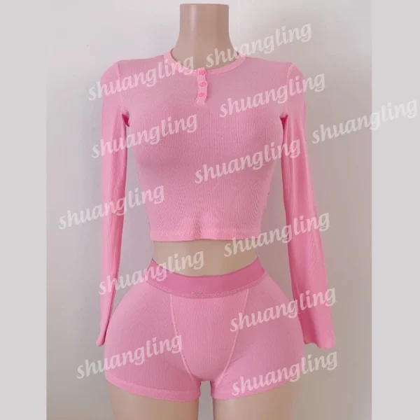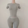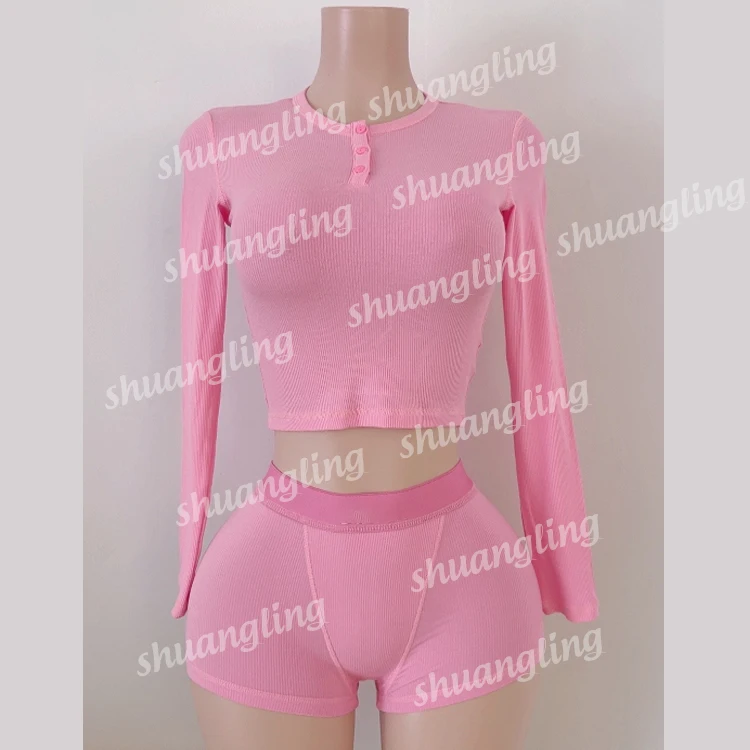 2024 Autumn LOGO Women Two Piece Sets Clothing Cotton Ribbed Shirts Short Set Women Loungewear Sets
