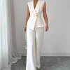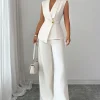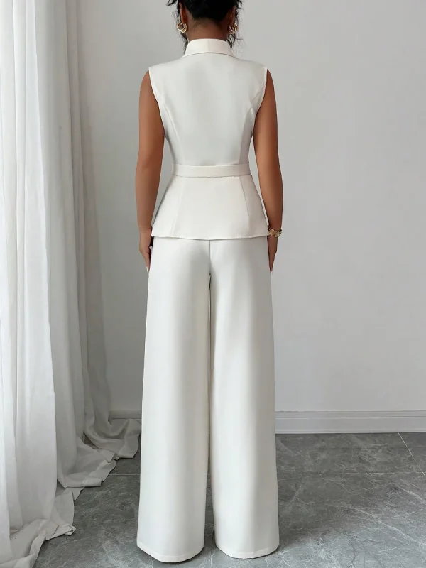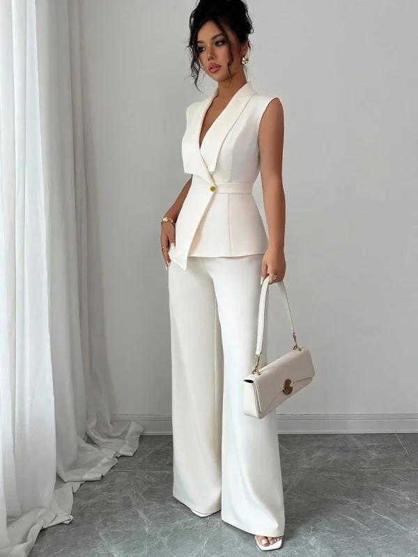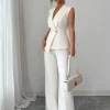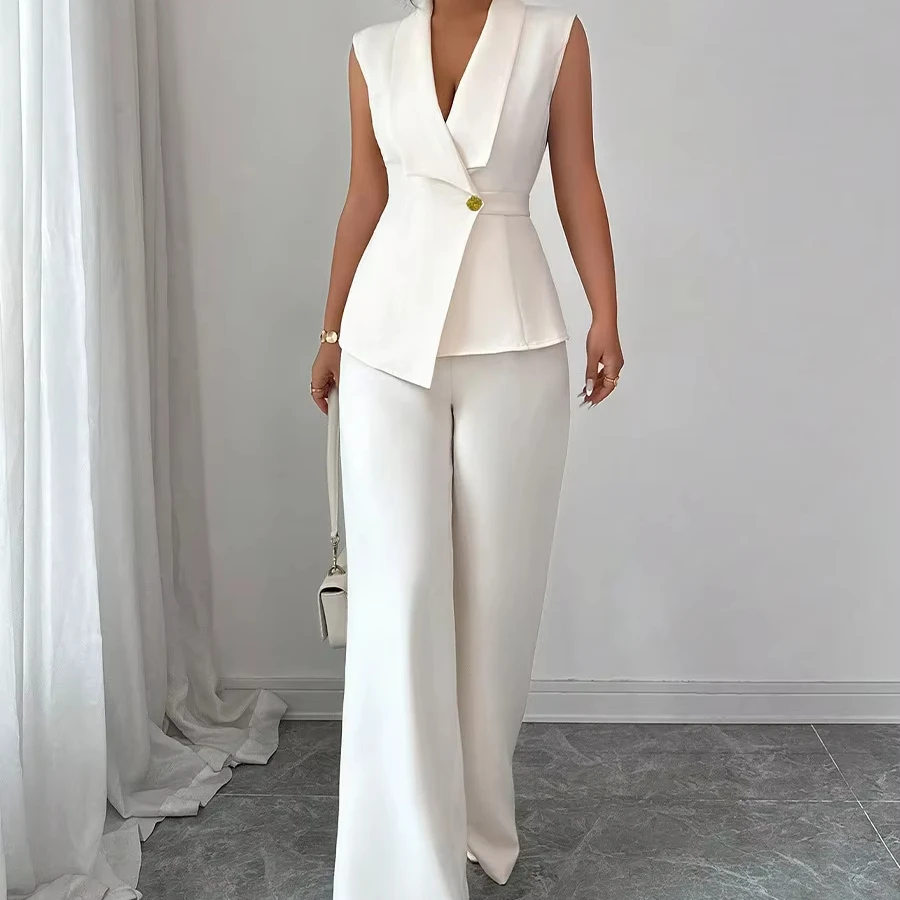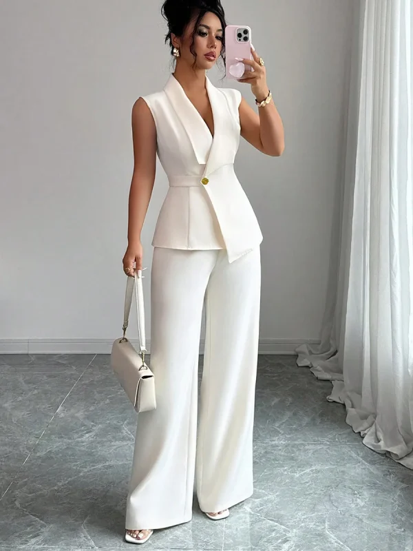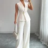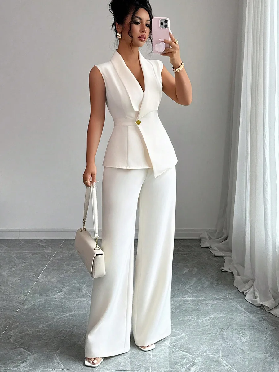 2025 Autumn Women’s Solid Color Vest and Pants Set Elegant Straight Leg Trousers Suit for Office Wear Business Casual
