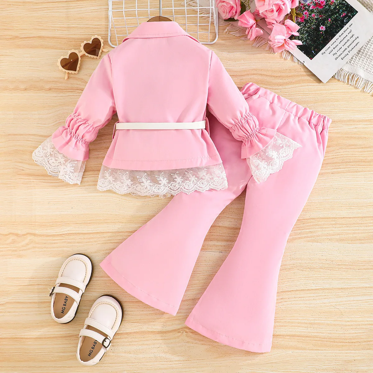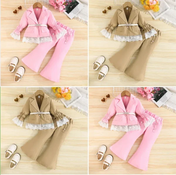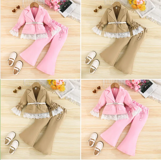 25 Autumn/winter New Girls’ Long Sleeved Pants White Waistband Top with White Lace Cuffs Paired with a Two-piece Suit