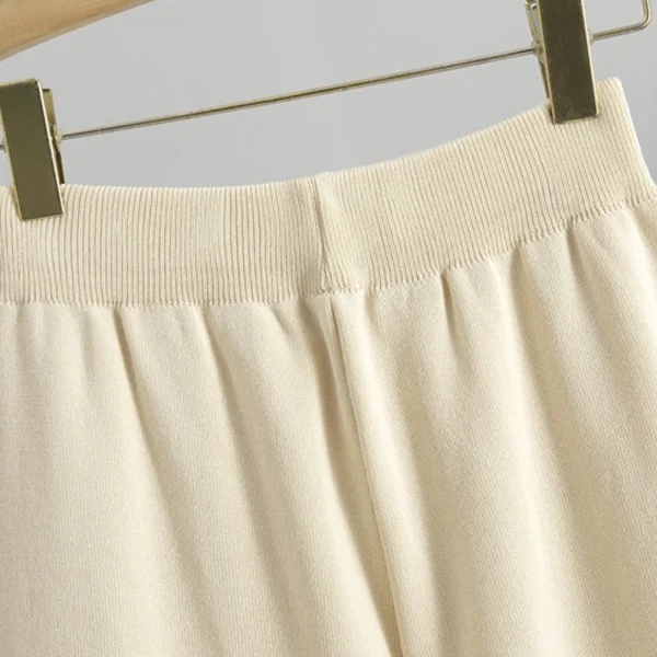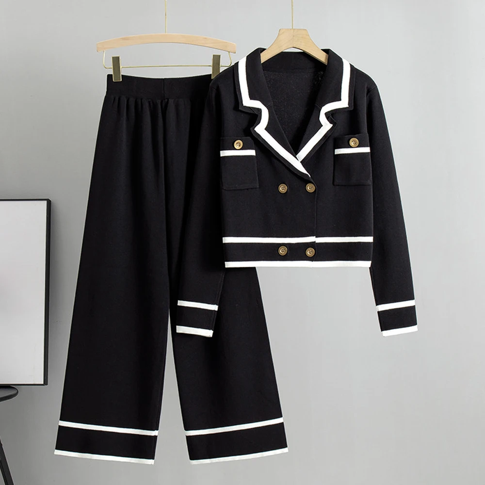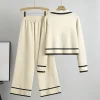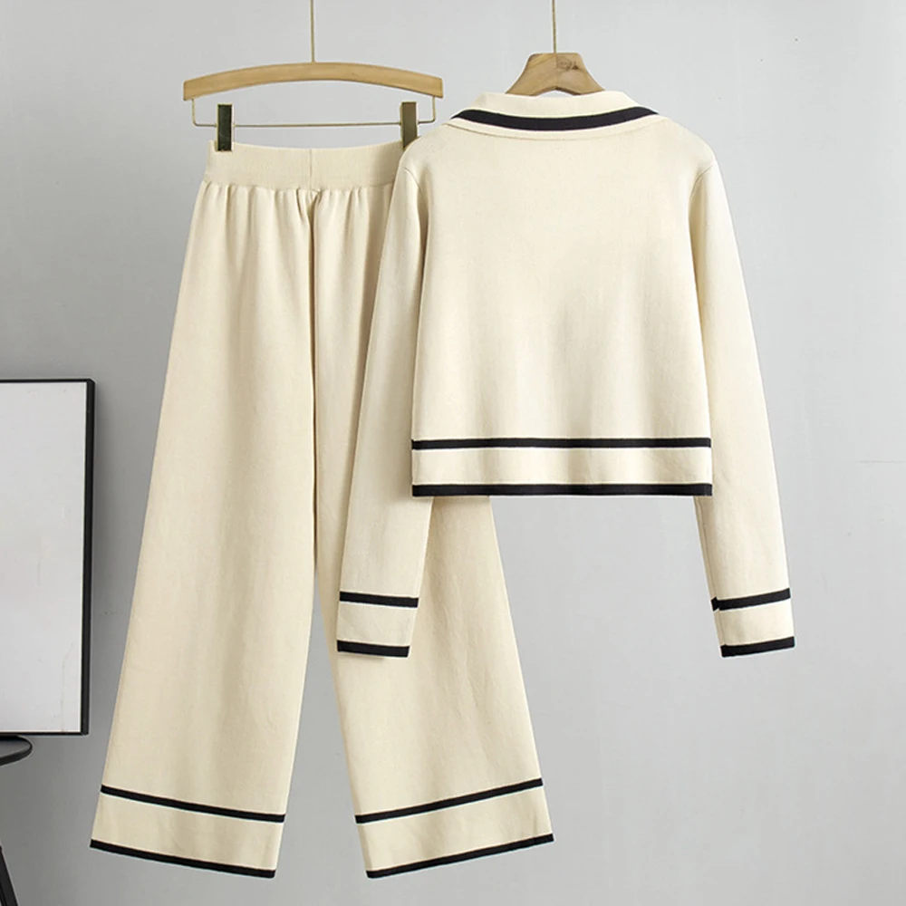Atoptex Lady Jacket Sweater Pants Set Solid Color Ribbed Knitted Fashionable Casual Style Autumn Long Short Tops Washed Technics
