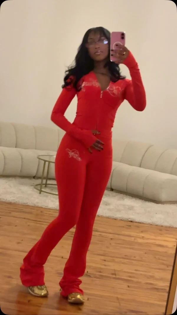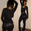 Autumn 2025 Embroidered Logo Jacket Shirt Leggings Flare Pants Tracksuit Women Two Piece Skinny Fit Set