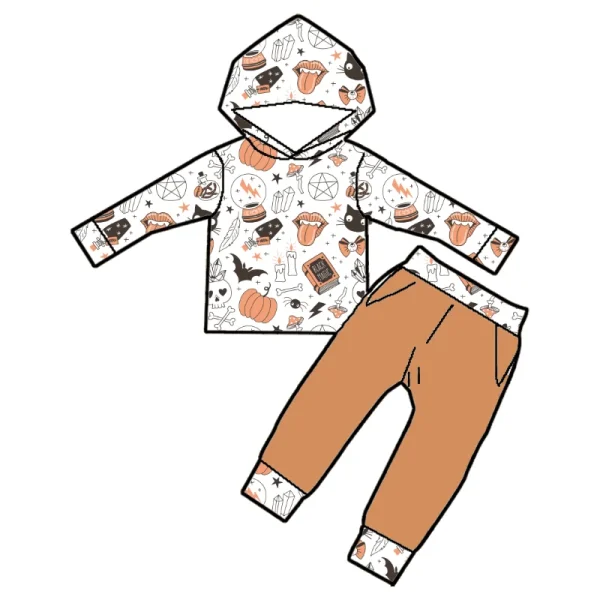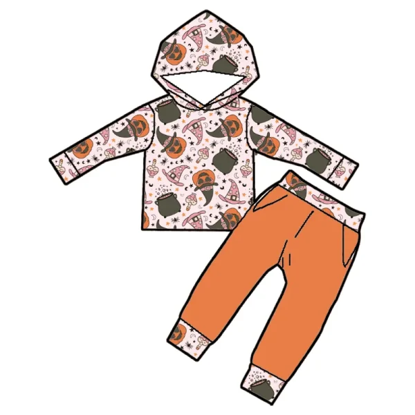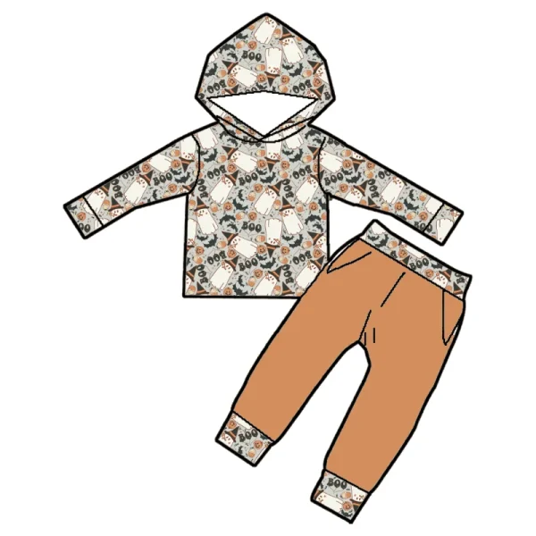 Autumn Children’s Clothing Set Long Sleeved Hooded Two-piece Set Halloween Printed Bamboo Fabric Soft