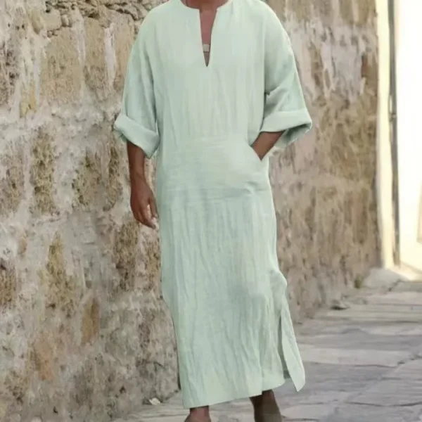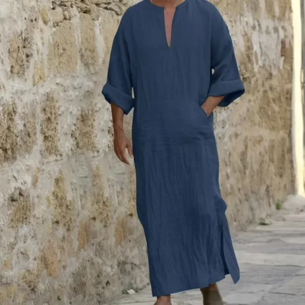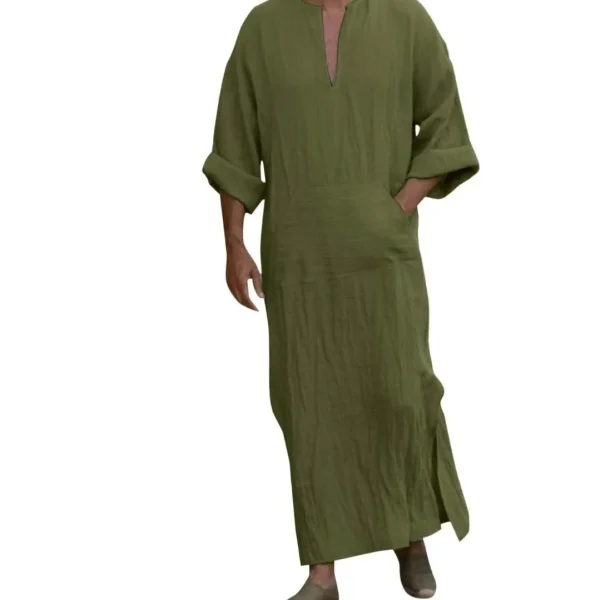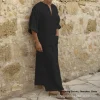 Autumn Hot Fashion New Men’s Long Sleeve Traditional Muslim Clothing From the Middle East Cotton Linen Big T
