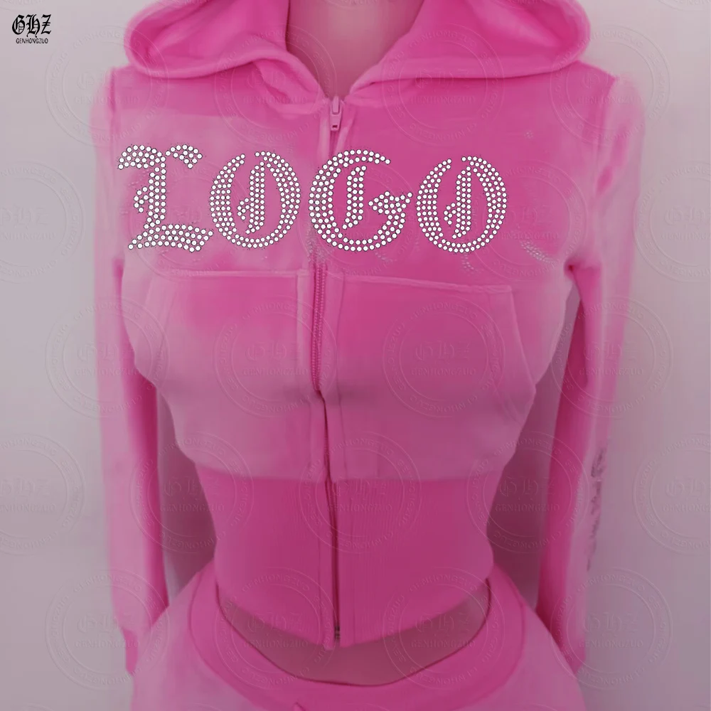 2025 Fall Winter Hoodies Jacket and Flared Pants Clothing Manufacturers Y2k Clothing Loungewear Women Rhinestone 2 Piece Set