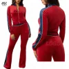 Autumn New Arrivals Tall Girl Friendly Sets Velvet Color-blocked Jacket and Pants 2 Piece Set Women
