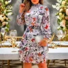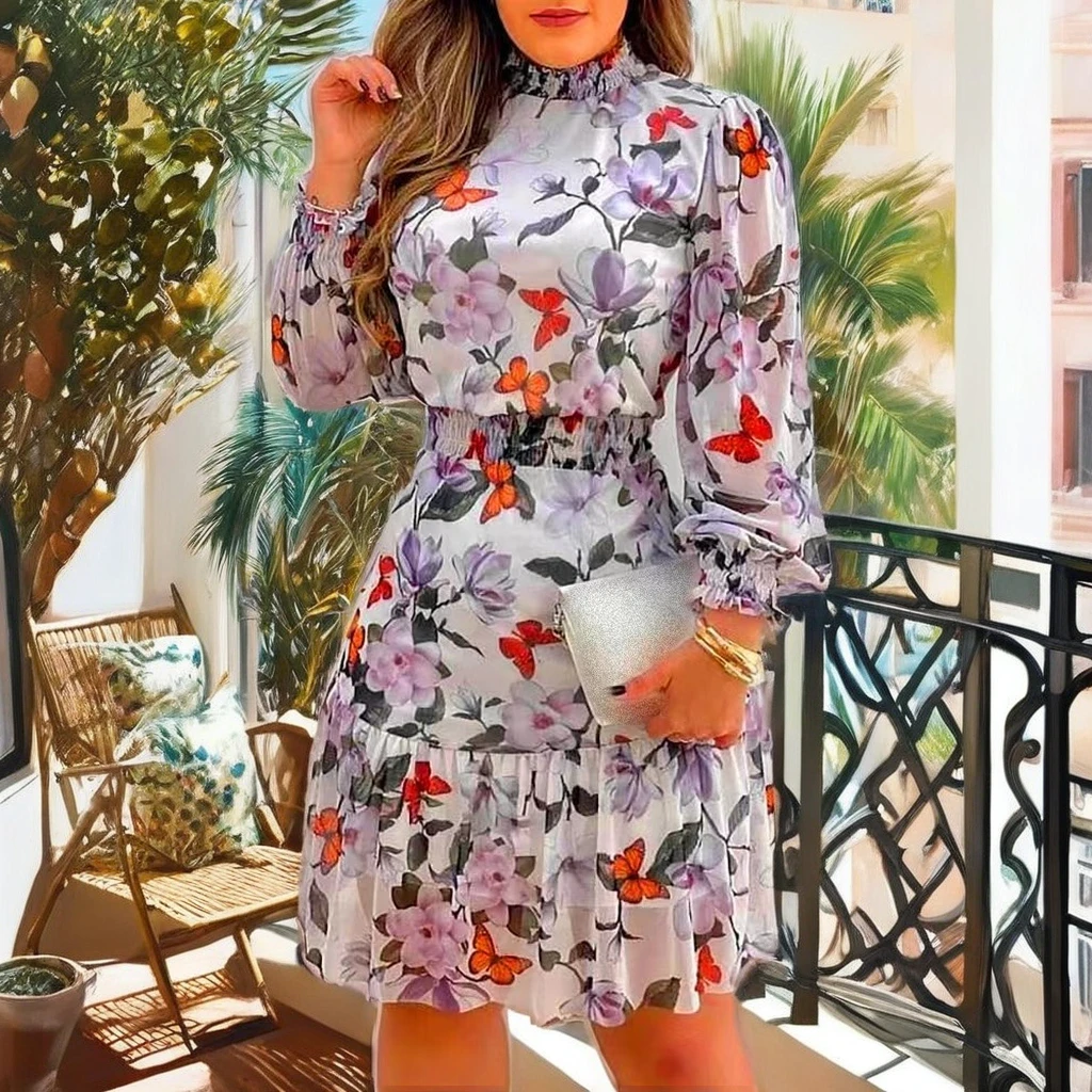 Autumn New Intellectual Elegant Pile Collar Floral Floral Pleated Pleated Skirt Casual Holiday Party Women’s Dress