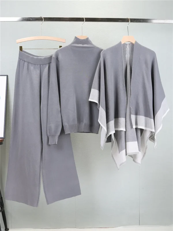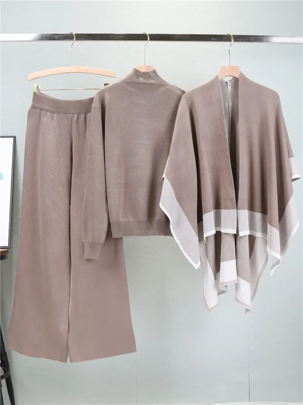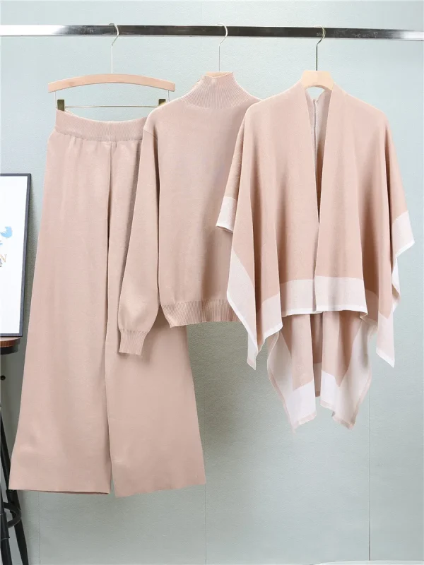 C Clothing Women Long Sleeve Fall Outfit Set Cozy Winter Clothing Elegant Knit 3 Pieces Set