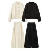 Autumn 2025 Embroidered Logo Jacket Shirt Leggings Flare Pants Tracksuit Women Two Piece Skinny Fit Set