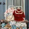 Autumn Winter 2pcs Girl Clothing Set New Design Blue Plaid Long Sleeve Dress with Ruffles Cotton Little Girl Outfit