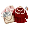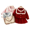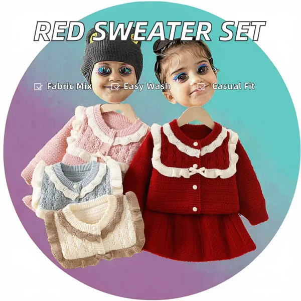 Autumn Red Christmas Floral Knitted Top Skirt Set for Girls Winter Fashion Casual Two-Piece Sweater for Toddler Girls