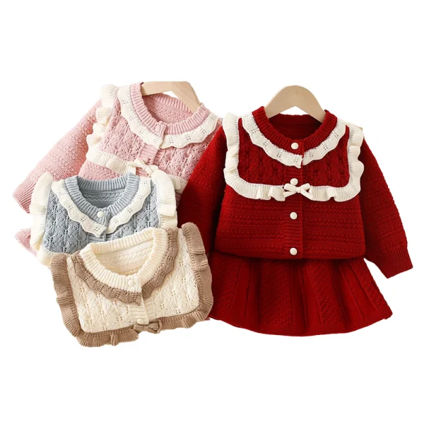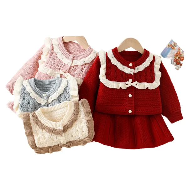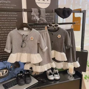 Girls’ Autumn New Lace Cardigan Suit Factory Direct Sales
