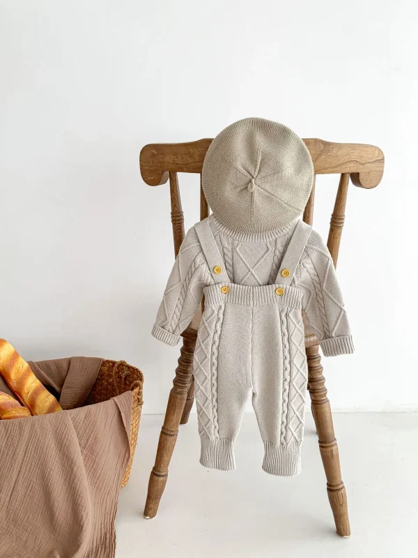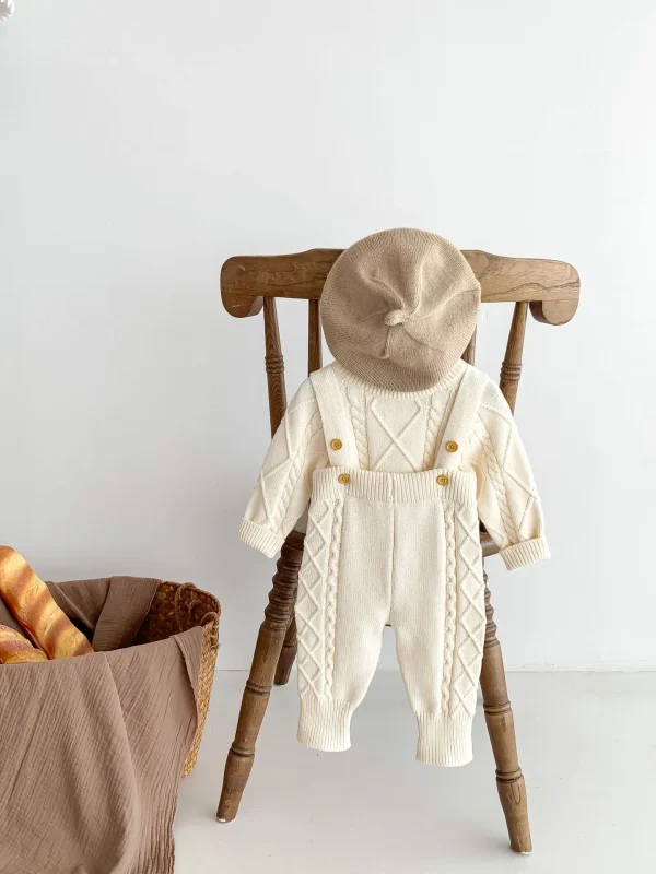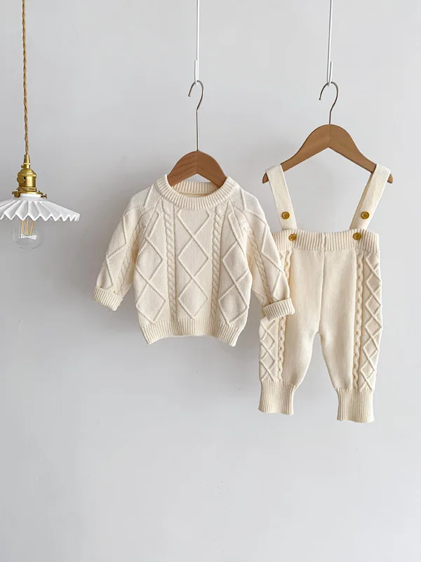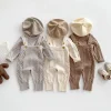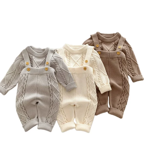 Autumn Spring Newborn Baby Girls Boys Solid Color Knitting Clothing Set Sweater Overall Children Clothes Suit