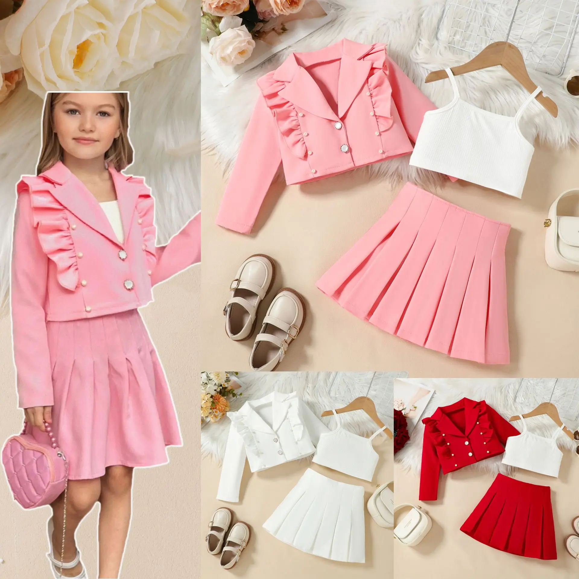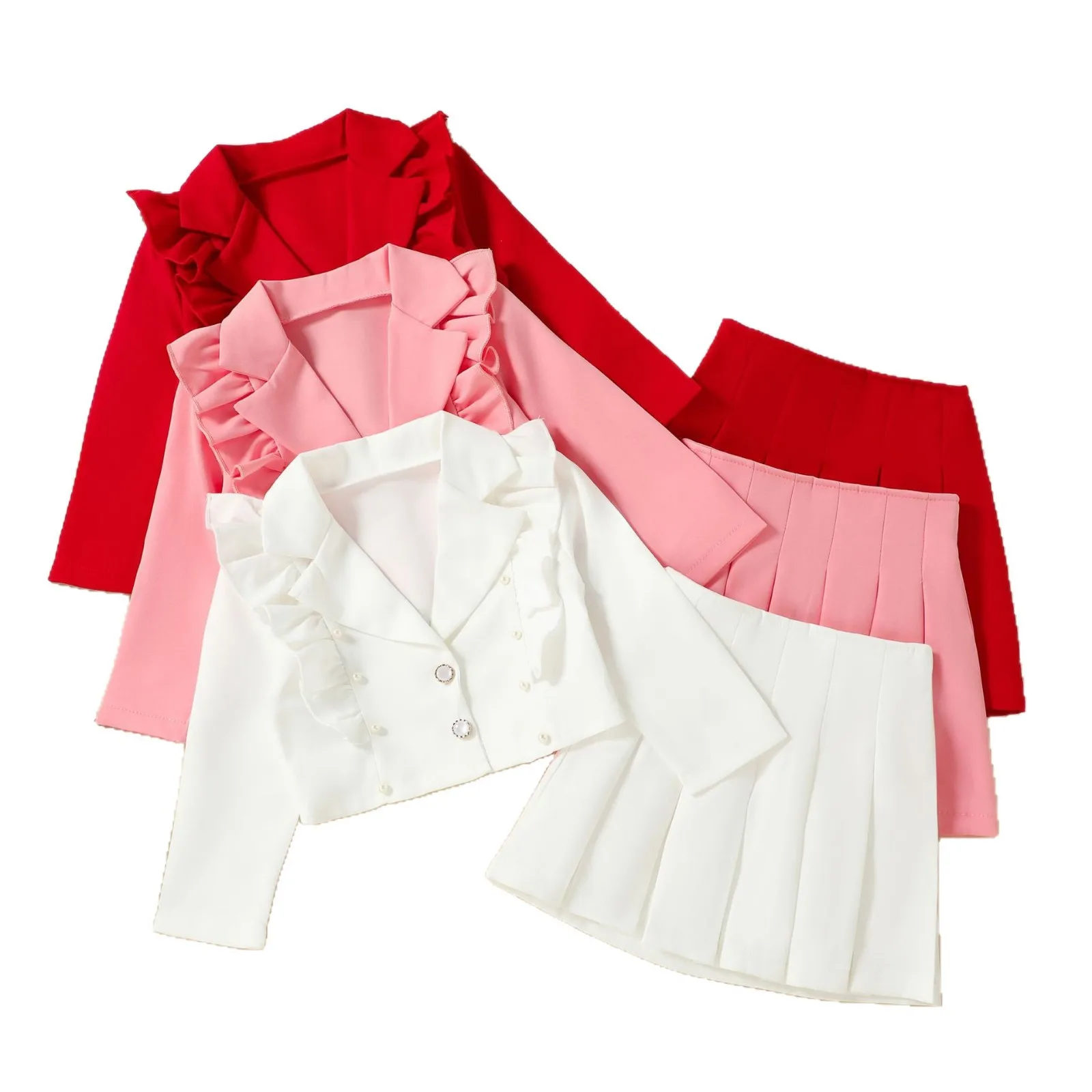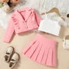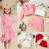 Conyson 2023 Autumn Spring New Design Boutique the New Soft Girls’ Denim Suit Lapel Shirt and Pleated Skirt Two Piece Girl’s Set