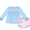 Autumn Winter 2pcs Girl Clothing Set New Design Blue Plaid Long Sleeve Dress with Ruffles Cotton Little Girl Outfit