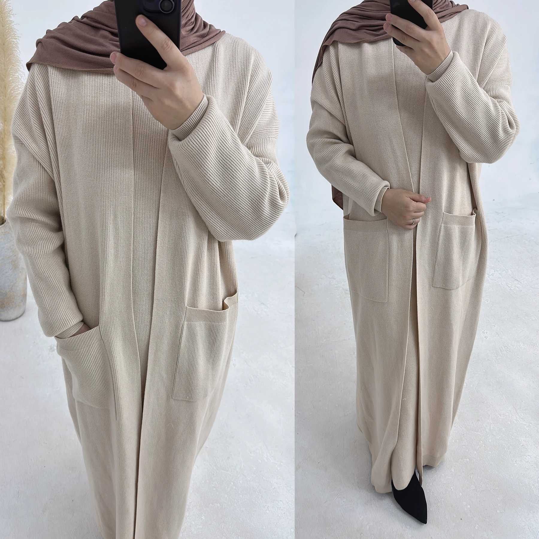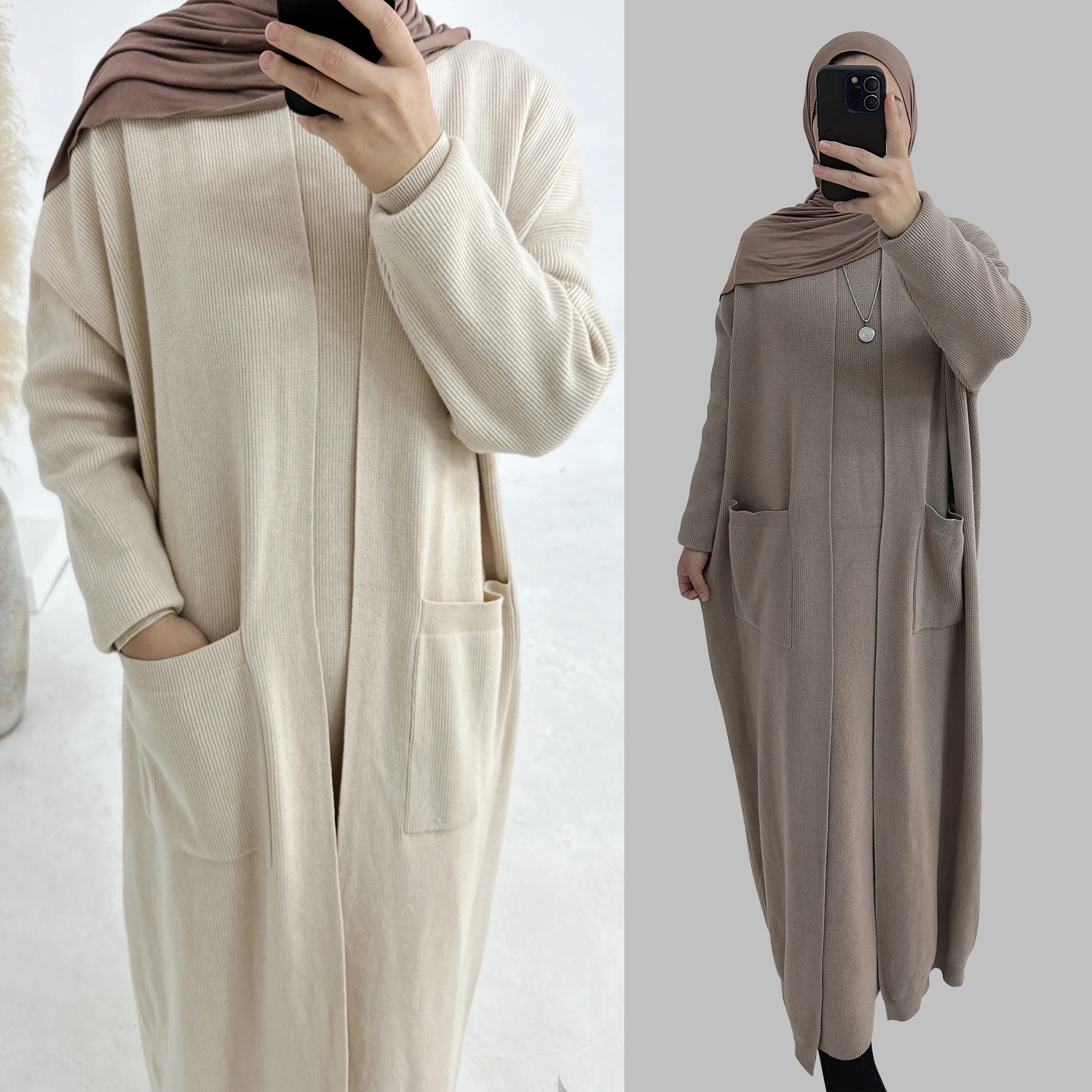 Autumn Winter Warm Coat Cardigan Sweater Knitwear Lady Elegant Loose Style Big Pocket Soft Knit Clothing Casual Long Coat