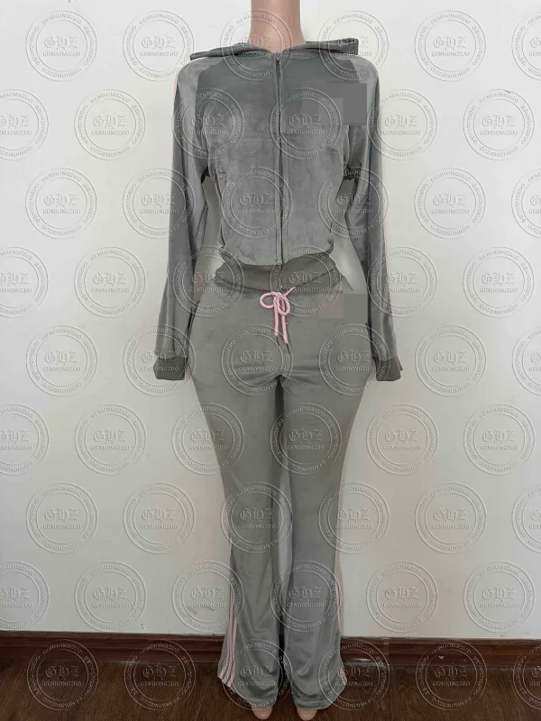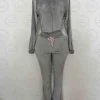 Autumn Gray Bomber Jacket and Wide Leg Pants Coord Two Piece Loungewear Set Matching Zip up Sweat Suit for Women Ladies