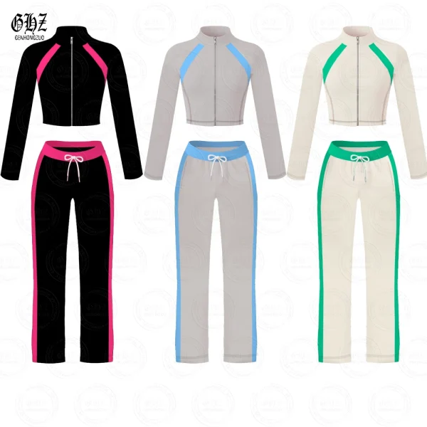 Clothing Manufacturers Y2k Set 2025 New Arrivals Autumn Winter Color Blocks Long Jacket and Pants Logo 2 Piece Set Women
