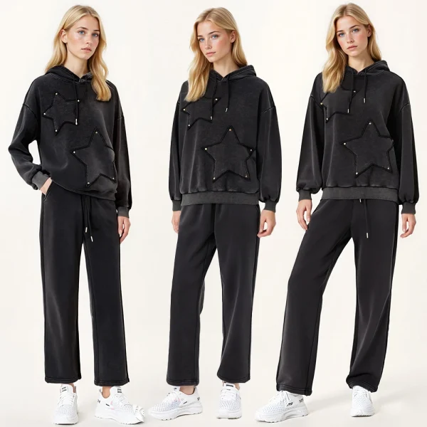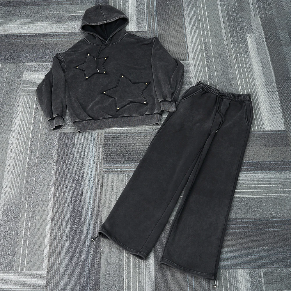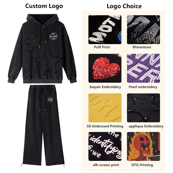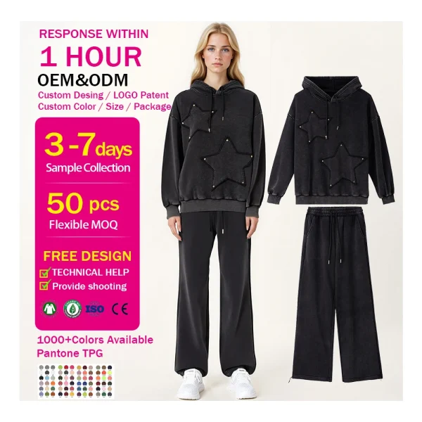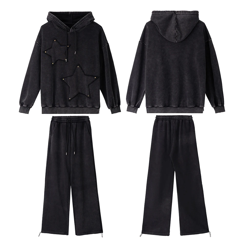 Clothing Sets French Terry Sweatsuit Hoodie Autumn Sweatshirt Sweat Pant 2 Pieces Set Embroidery Tracksuit for Women
