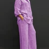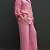 Atoptex Lady Jacket Sweater Pants Set Solid Color Ribbed Knitted Fashionable Casual Style Autumn Long Short Tops Washed Technics