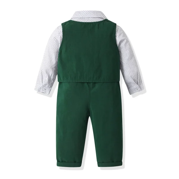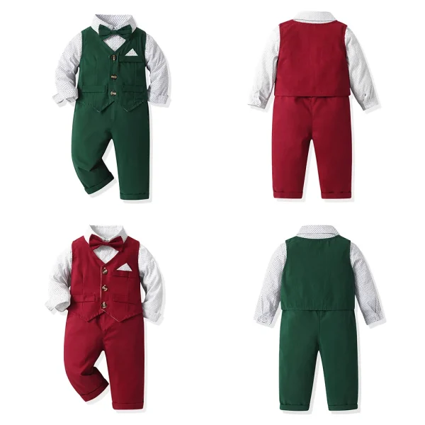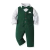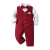 Fashion Boy Gentleman Waistcoat Autumn Long Sleeve Bow Cotton Shirt Trousers Christmas Suit Outfits Wholesale Boutique Clothing