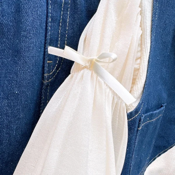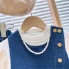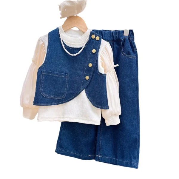 Girls Casual Spring Autumn New Children’s Clothing Set Treasure Fashion Print Bottoming Shirt Denim Vest Straight Pants Wear