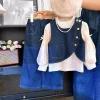 Girls’ Set 2025 Spring and Autumn New Girl Pink Long Sleeved Top Cowboy Short Skirt Two Piece Set