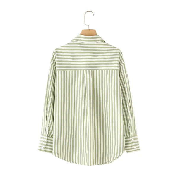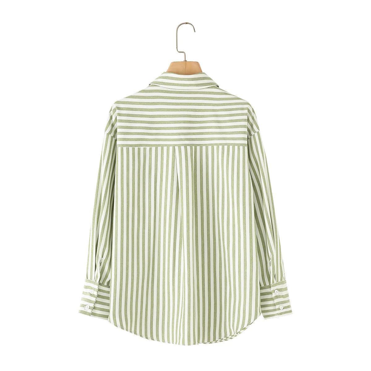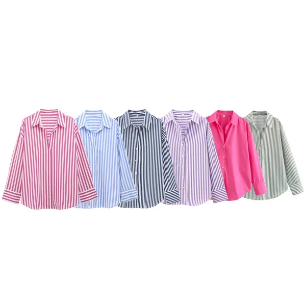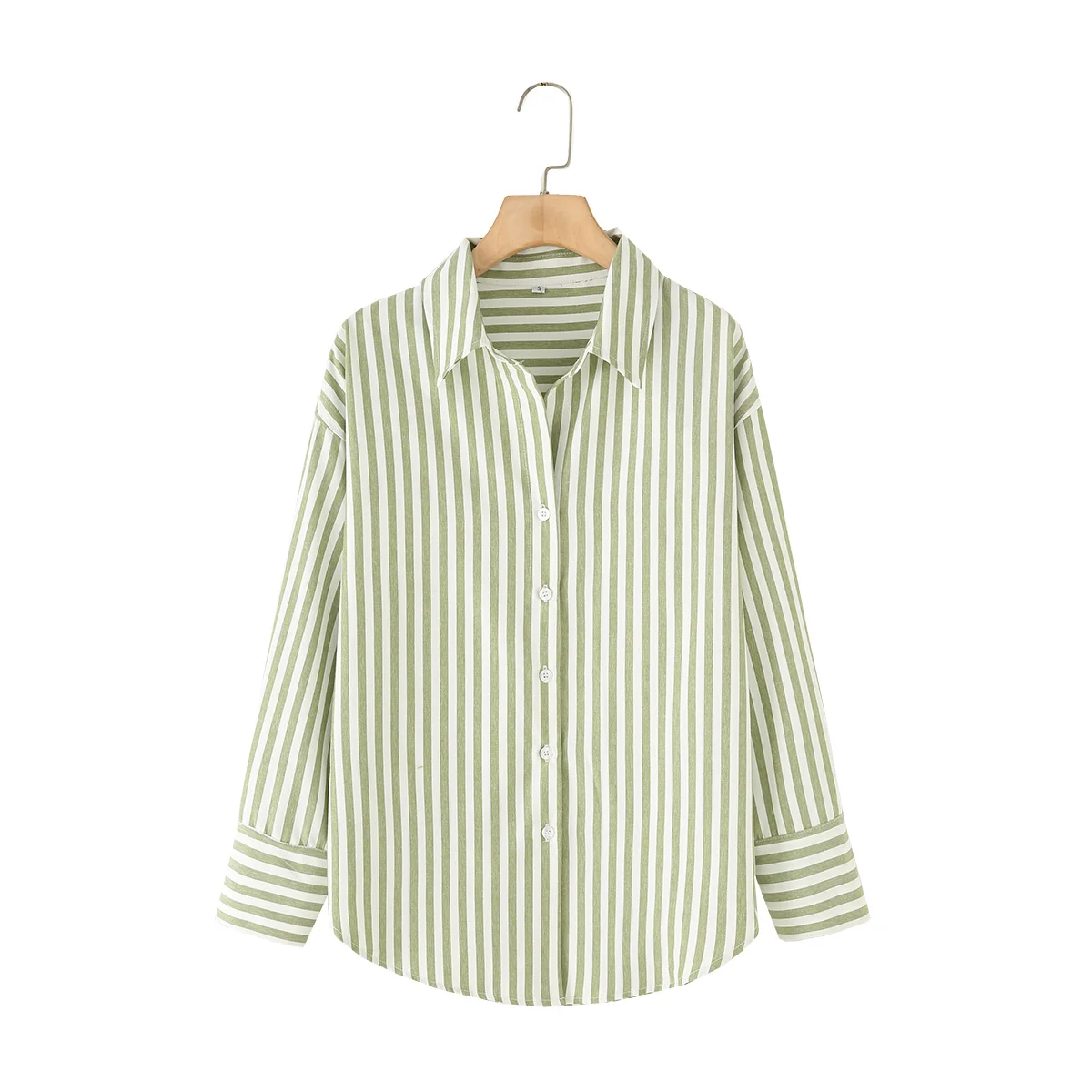 KAR&OT ZA 2025 women’s spring new arrivals casual loose versatile striped poplin lapel shirt top 4387096