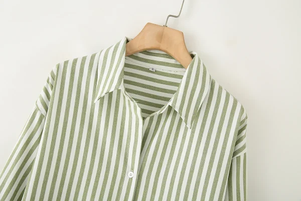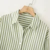Spring Autumn New Women’s Casual Vintage Style Loose Simple Stripe Tie Button Decoration Woven Shirt