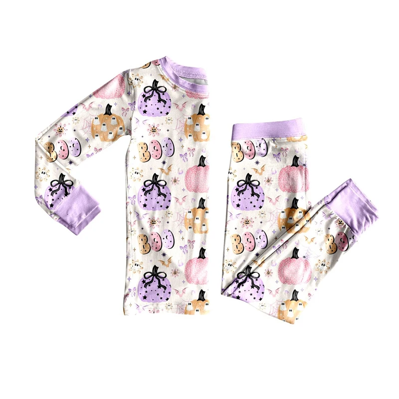 Kids Girls Fall Design Clothing High Quality Pumpkin Print Long Sleeve Hoodie Top With Ruffle Pants Boutique Outfit