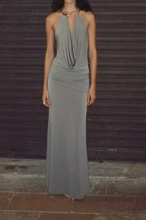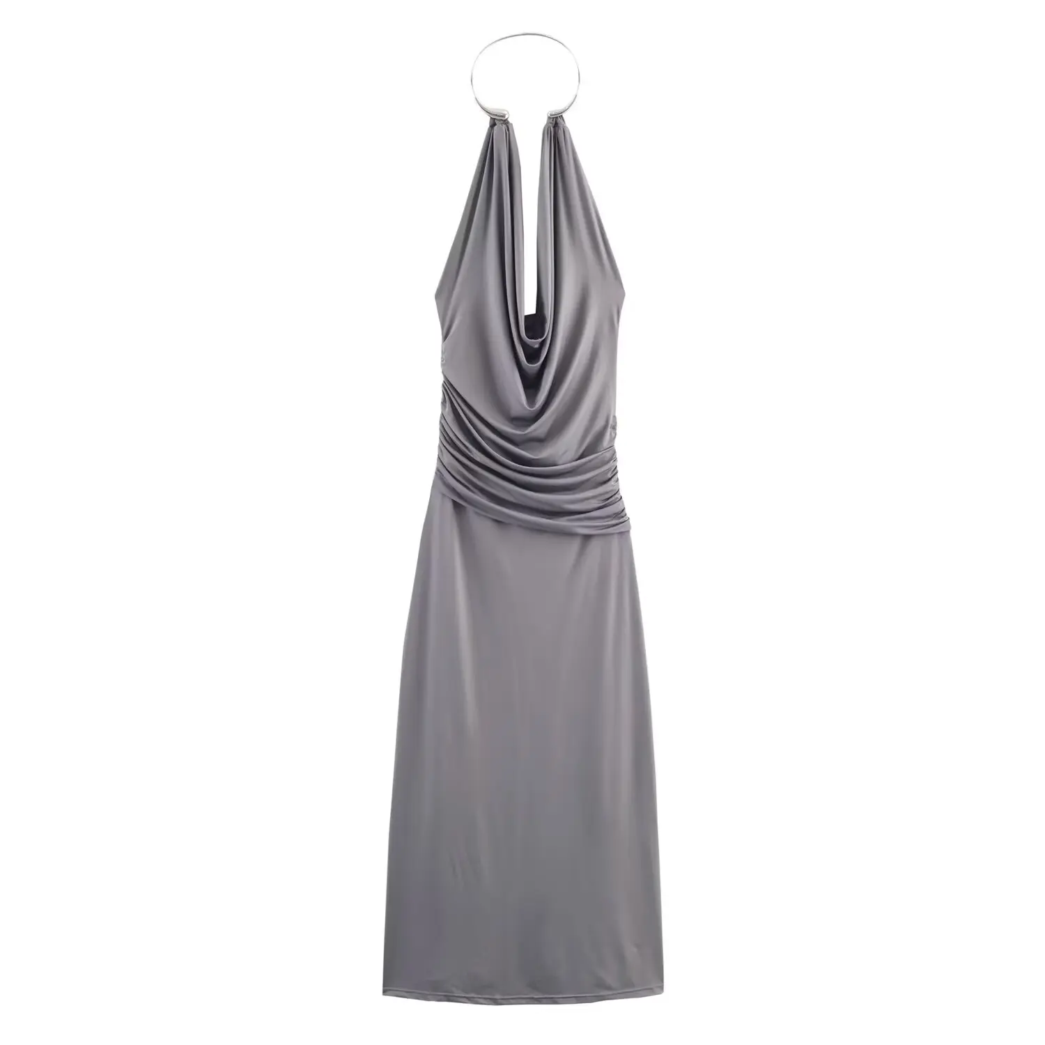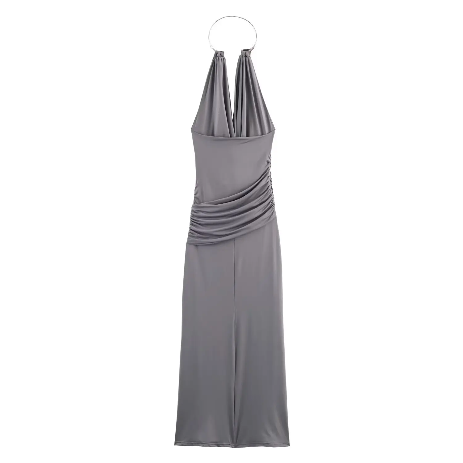 MYST&ZA Women’s Clothing 2025 Autumn New Fashion Jewelry Collar Sexy Backless Slim Long Dress 5063251