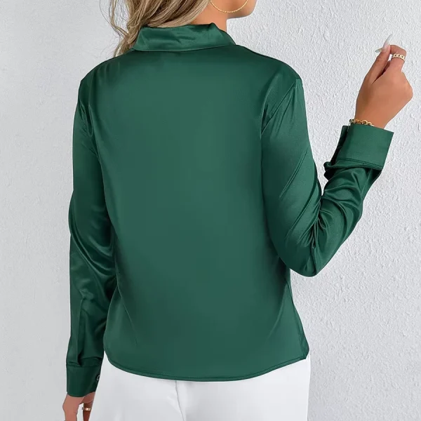 Autumn Spring Korea Straight Retro Design Women Satin Shirt Solid Color Long Sleeve Causal Women’s Fashion Tops Blouse Shirt