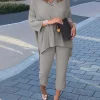 Autumn Gray Bomber Jacket and Wide Leg Pants Coord Two Piece Loungewear Set Matching Zip up Sweat Suit for Women Ladies