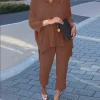2024 Autumn LOGO Women Two Piece Sets Clothing Cotton Ribbed Shirts Short Set Women Loungewear Sets