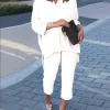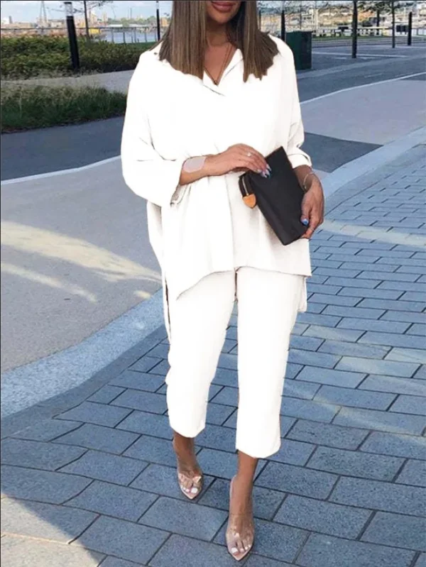 Spring Fall Women’s Clothing Cotton Linen Casual Comfortable Elastic Waist Set Women Shirt Cropped Pants Two Piece Ladies Sets