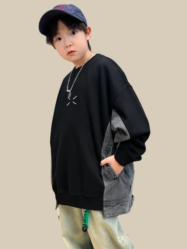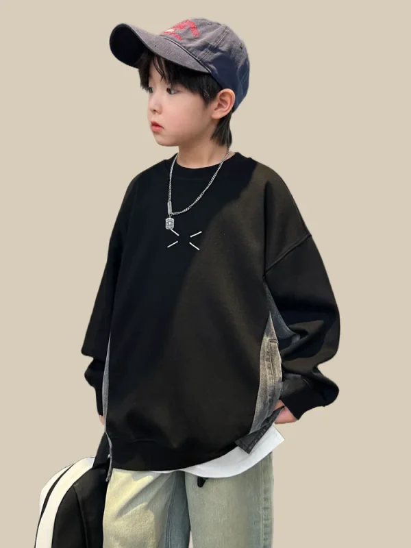 Teens Clothing Autumn New Casual Middle Large Children’s Sweatshirt Boys Cool Handsome Loose Trendy Pullover for Age 7-12