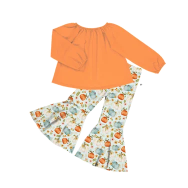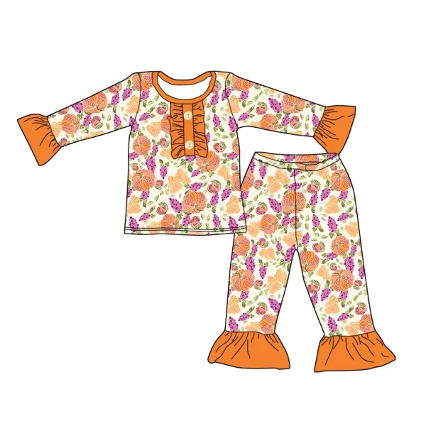 Toddler Two Piece Outfits Set Clothing Outfits Kids Costumes Girl Ruffle Long Sleeve Fall Pumpkin Clothes