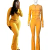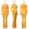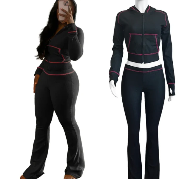 Waffle Set 2025 Fall Waffle Patchwork Knit Long Sleeve Hoodie and Hight Waist Flare Pants Set Loungewear Women Tracksuits Set