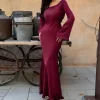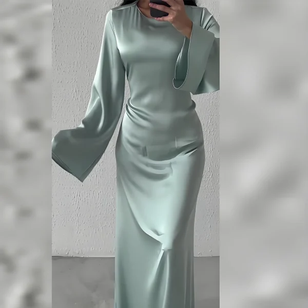 Women’s Micro-Swing Dress with Lace-up Solid Color Round Neck Long Sleeve for Autumn Winter Digital Printing Elegant Temperament