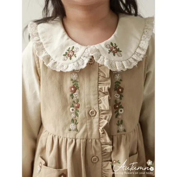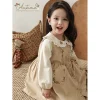 YOEHYAUL Q3245 Autumn Cotton Embroidery Baby Girls Kids Blouse Suit Sleeveless Dresses Wholesale Girls Kids Shirt Top Dress Set