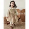 Wholesale Autumn Winter Baby Sets Kids Solid Lapel Long-sleeved Shirt Plaid Pleated Skirt Two Pieces Clothing Set for Girls