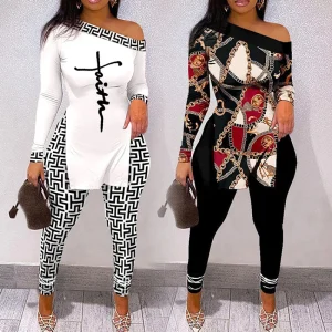 Spring Fall Winter Plus Size Women’s Clothing New Print Split Hem Ladies Long Sleeve t Shirt Top Pants Two Piece Women Sets