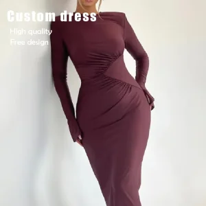 American Style Women’s Clothing 2025 Summer Fashion Solid Color Neck Unique Pleated Slim Autumn Breathable